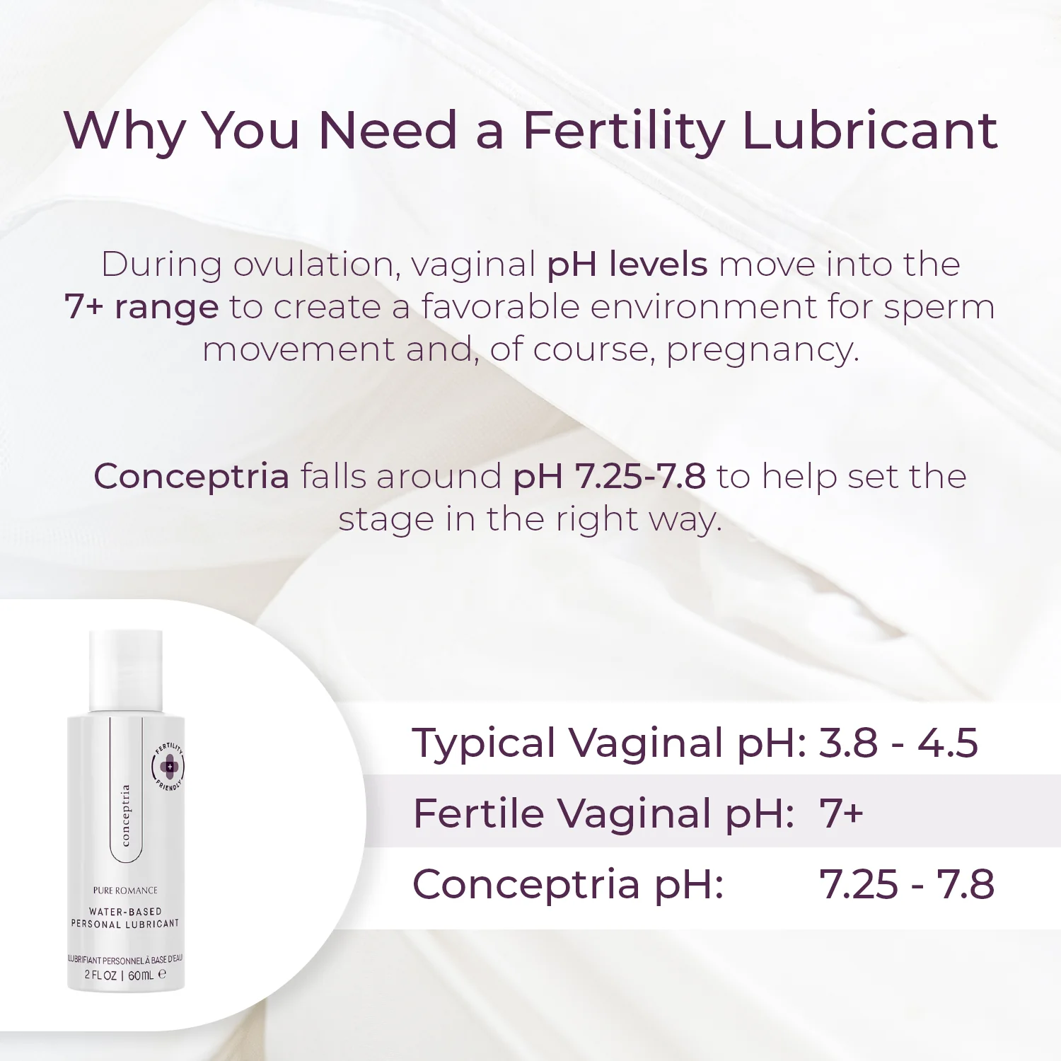 Trying to conceive? Shelve everything else and reach for Conceptria, a fertility-friendly lubricant that helps set the stage for conception and puts the fun back in intimacy. Because let’s face it, sex shouldn’t feel like work!