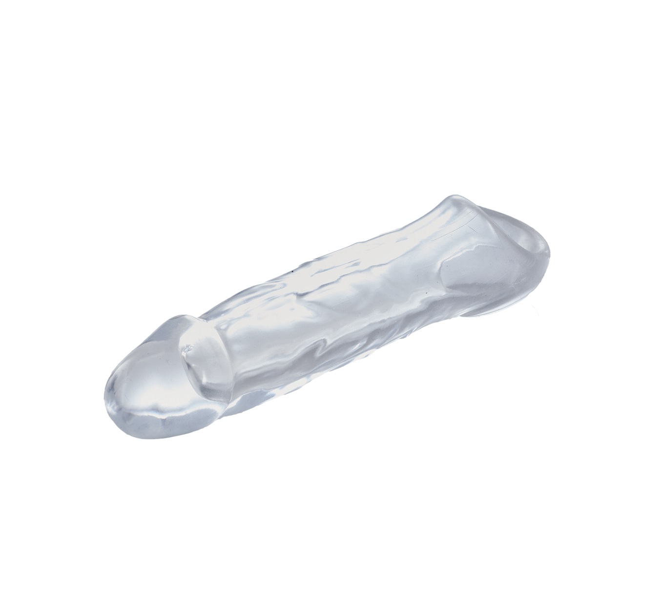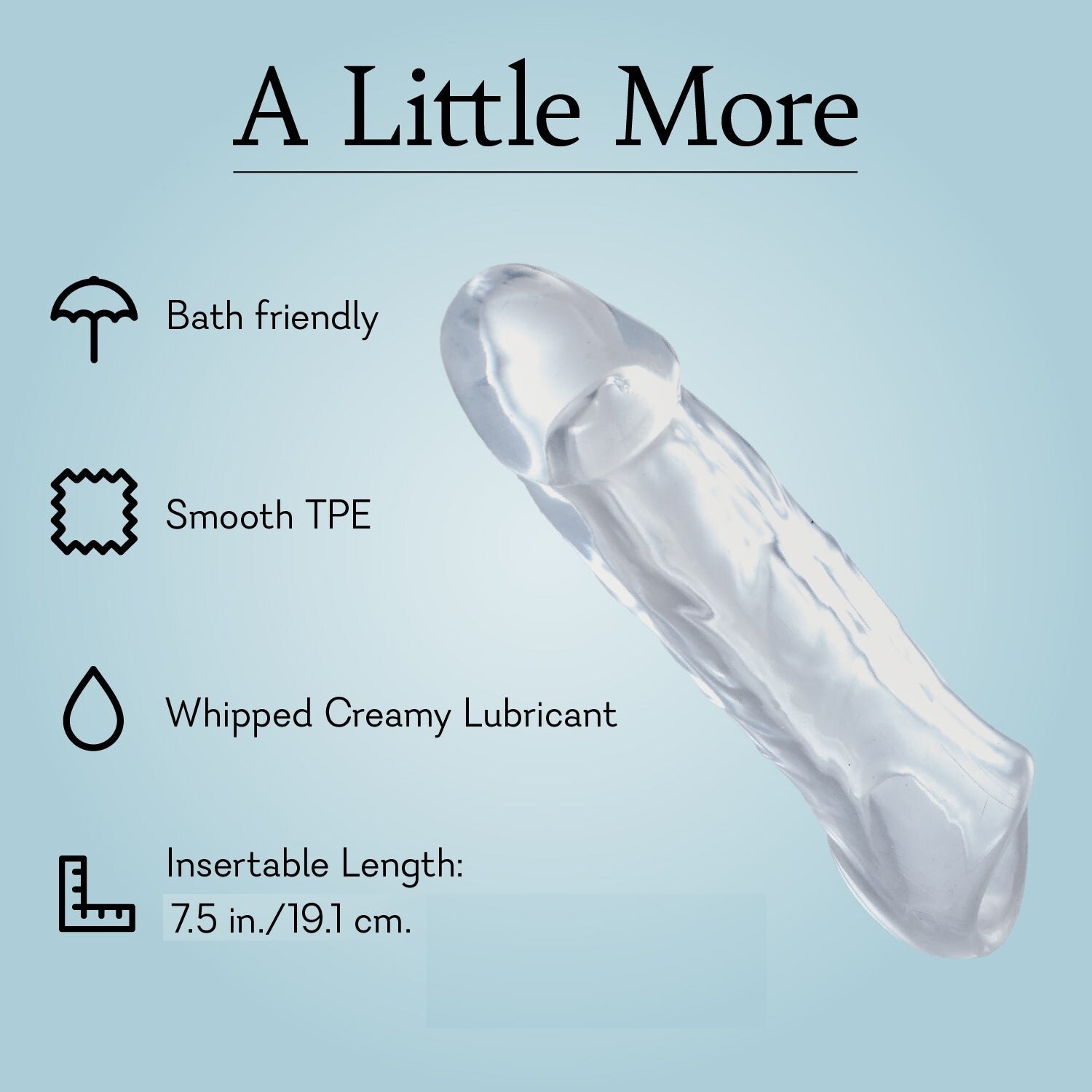 Looking for A Little More? Enhance your bedroom escapades with this 7.5″ (19 cm) penis extender. Made of super soft TPE, A Little More adds both length and girth to your partner to help take things to the next level. Just apply some creamy lubricant to the interior of the toy and slide in, pulling the loop behind the testicles to keep the extender in place. After that, apply any lubricant to the exterior of the extender…and enjoy.